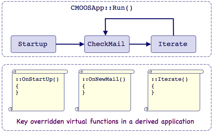 Figure 1.2: The MOOSApp Key Functions: All MOOS apps are a subclass of the MOOSApp superclass. Development mostly boils down to overriding the three functions below with the particulars of one's own liking.