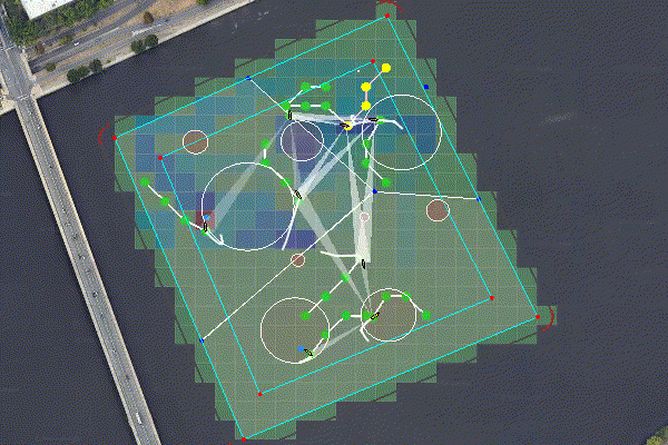 Figure 6.1: Multiple agents perform and adaptive seek and sample mission. The rosters for the seeking and sampling teams are assigned using pOpinionManager. The search space is partitioned using a BHV_Voronoi, and an optimal path is generated using an MDP with an MVI heuristic. The sample points are allocated via pGroupComboAlloc.