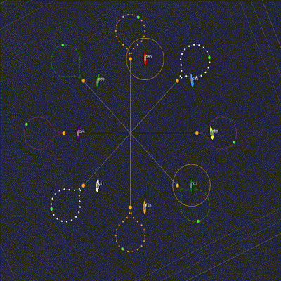 Figure 2.1: Eight vehicles start on the edge of a circle and must travel autonomously to the other side without hitting each other. This mission is called the joust mission and was developed in the swarm toolbox. No collision avoidance behaviors are active in this mission, only safety filtering via the pCBF app, demonstrating another layer of safety.